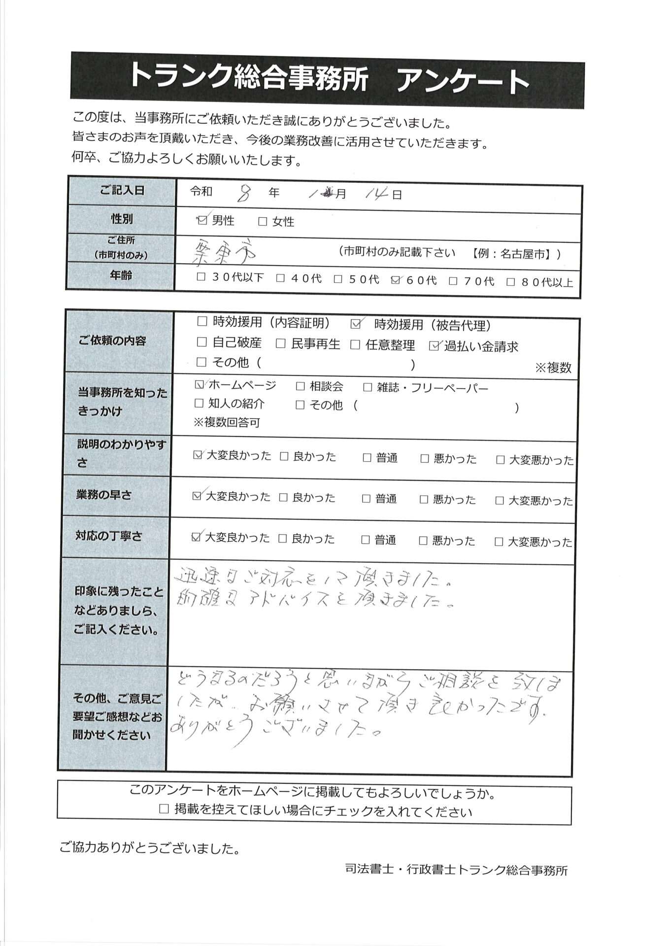 弊所が代理人となって時効手続きを行います。同時に信用情報の削除依頼も通知します。 ご希望があれば、「債権者への情報開示請求」や「信用情報の調査」も行います。