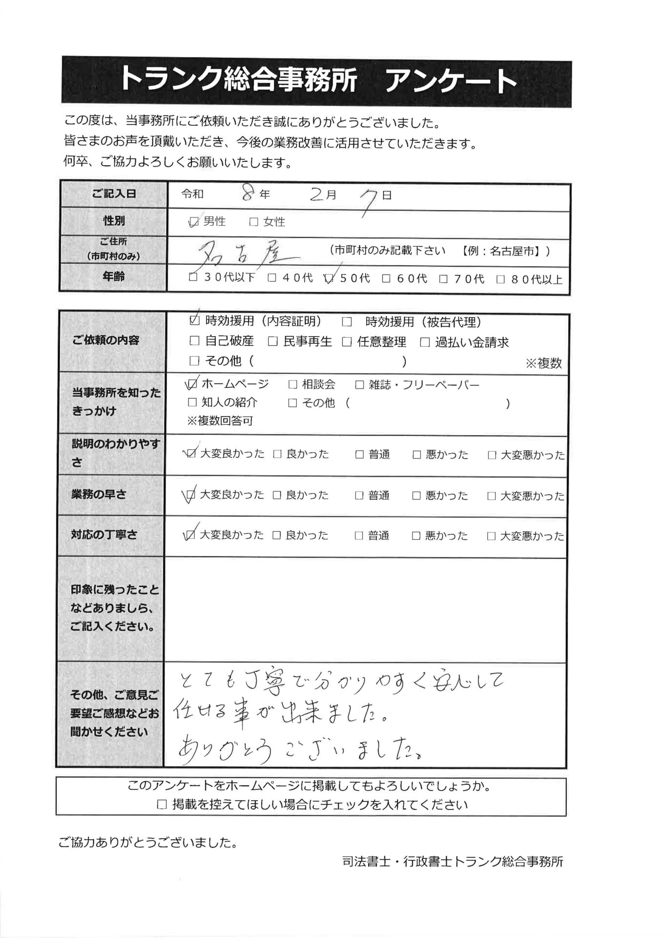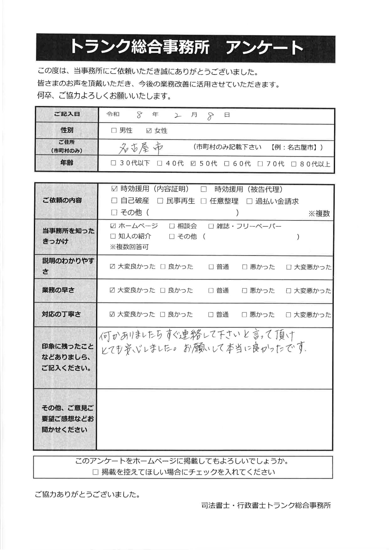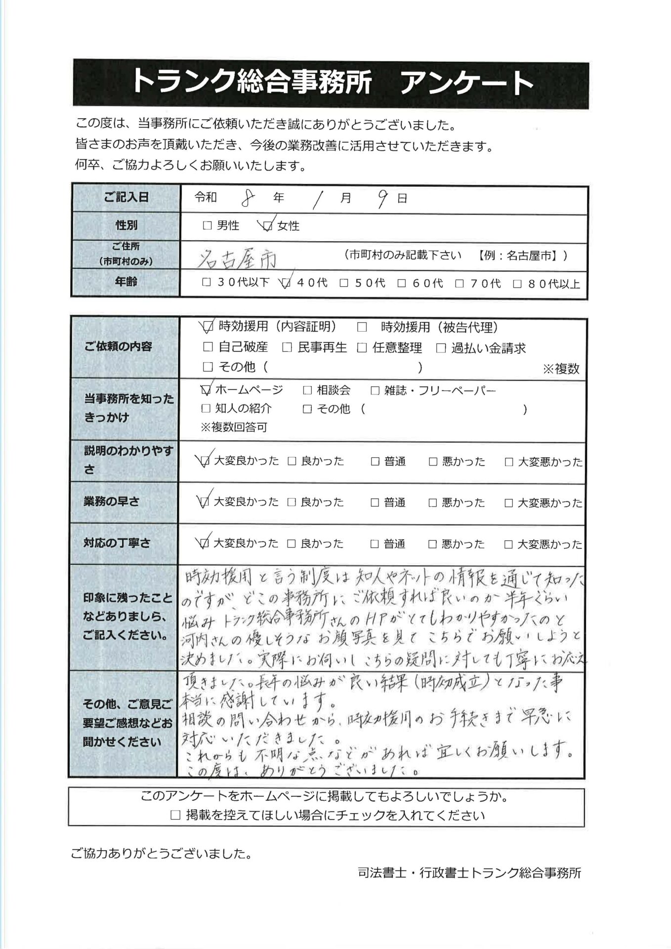 - 任意整理(分割や一括支払の和解)や個人再生・自己破産の手続きを検討して、借金問題の解決にあたります。 なお、時効が認められなかった場合は、時効援用に関する報酬は全額返金いたします。